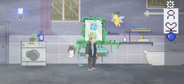 在桌子上拿起冠冕,将其放在头上,进入浴室,然后单击镜子进入镜子中的世界