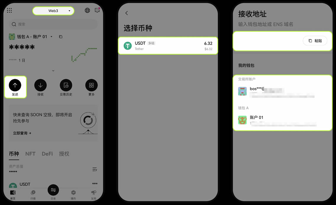 交易所提币1. 打开欧易交易所App(官方注册 | 官方下载)— 点击【交易所】切换至【Web3钱包】— 点击【发送】— 选择币种与网络 — 输入或选择接收地址。