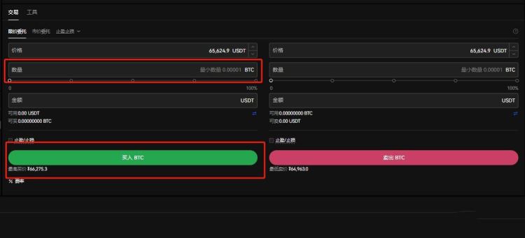 12、输入欲购买的BTC数量,点击“买入BTC”即可完成交易。