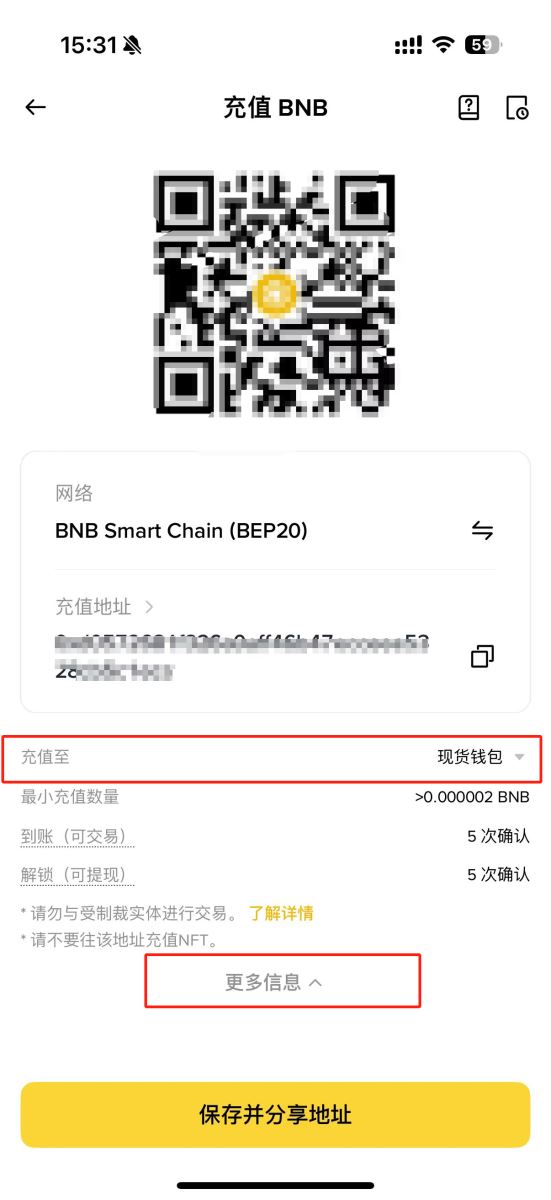 第六步,可点击“更多信息”选择充值钱包并检查所有信息