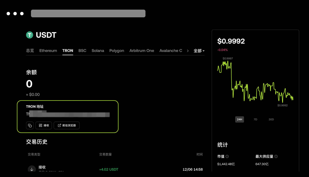 如何在Web3钱包确定数字资产的地址和网络?一、查看已有资产的地址和网络App端:
