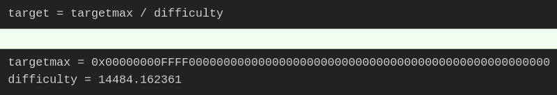 区块链协议规定,用一个常量除以难度系数,可以得到一个非常小的“目标值”(Target)。难度系数越大,目标值就越小。