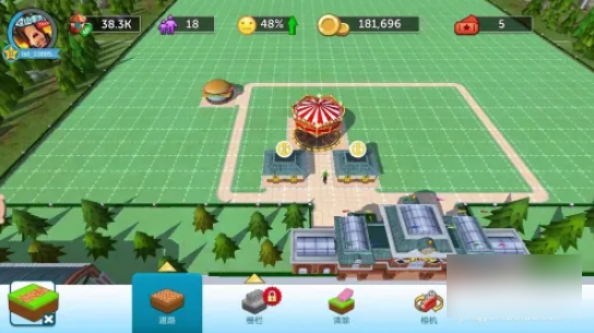 点击游乐设施,将卡片拖入游乐场,放置在指定位置,然后确认位置,如图