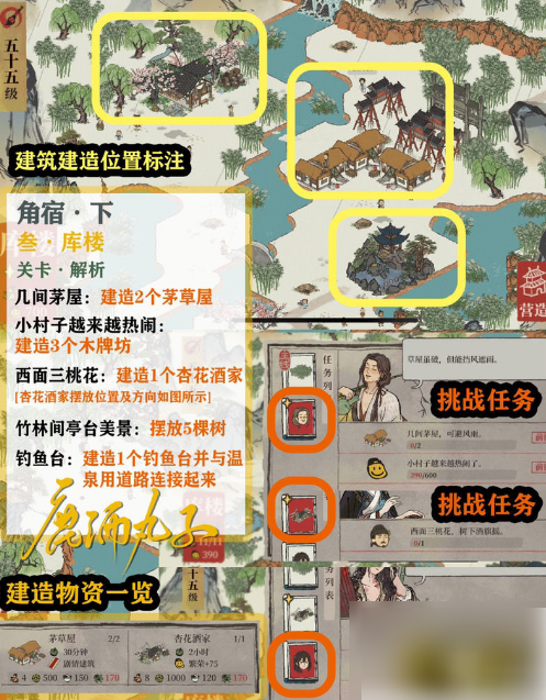 亭子和歇石需要太守准备。亭子可以通过交换盗贼/盐商获得,休息石可以通过交换盐商获得。