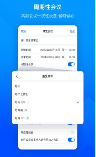 - 界面清爽简洁,一键安排、发起、加入会议;