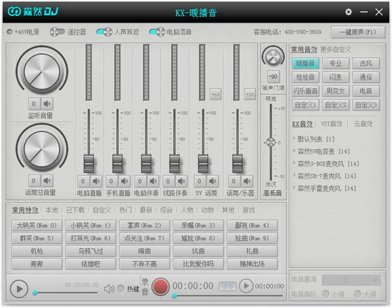 2.内置专业USB声卡功能、手机声卡功能、DSP声音处理器、专用KX机架和vT机架;