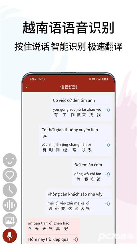 【主题词汇】越南字母发音、常用词汇分类学习、中越双语对比、语音播放、录音朗读、相关图片帮助理解和快速记忆。