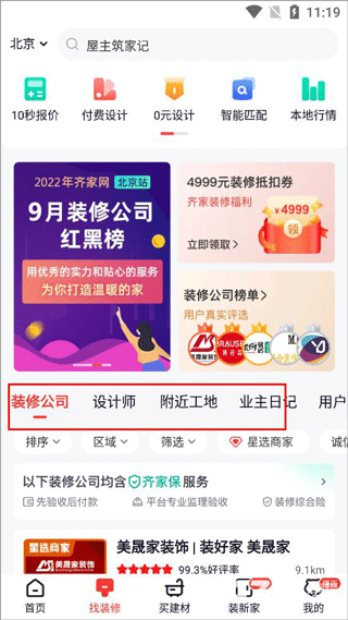 2、开放装修搜索,用户可以搜索装修公司、家装设计师;