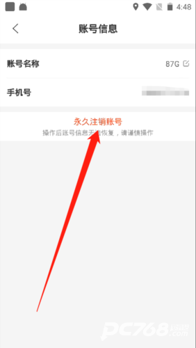 3、在账户信息页面,我们可以看到“永久注销账户”选项,点击进入;