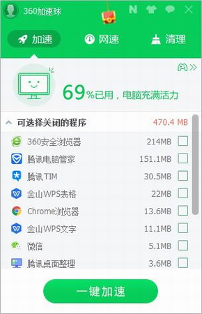 1。打开软件,然后单击一键加速,您可以关闭各种程序。