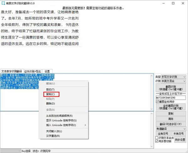 3。复制按钮:单击以将识别框的文本复制到剪贴板