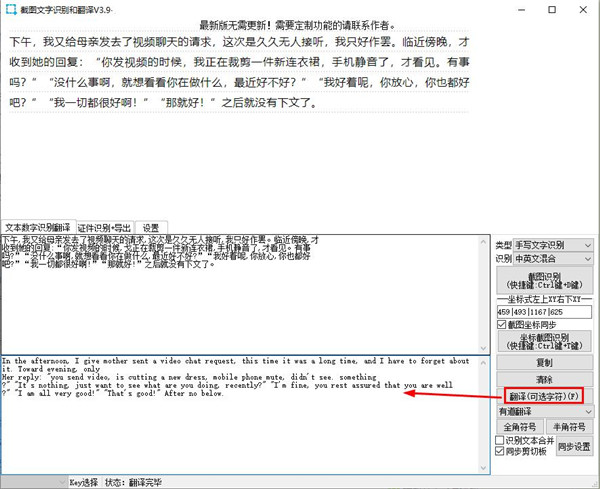 4。翻译按钮:单击“翻译识别框中的文本”,您可以在识别框中选择一个文本,然后单击“翻译”