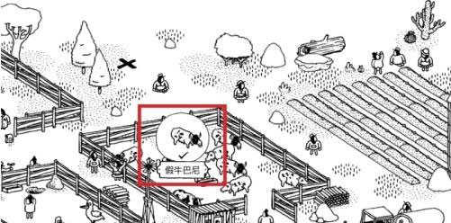 这是地图右上角的牧场,牧场左上角附近的牛是假牛