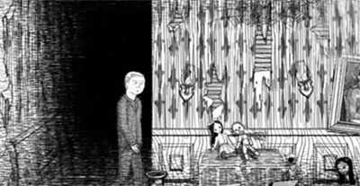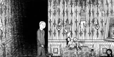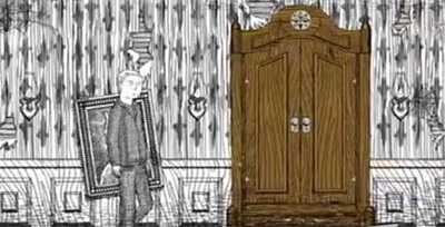 2。进入地下室,穿过许多娃娃的房间。特殊的红色边界女绘画。前进,终于遇到了大麻烦。出现了一个巨大的怪物,并藏在壁橱里。
