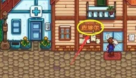 输入星德谷的游戏,找到皮埃尔的杂货店,打开门然后走进去。