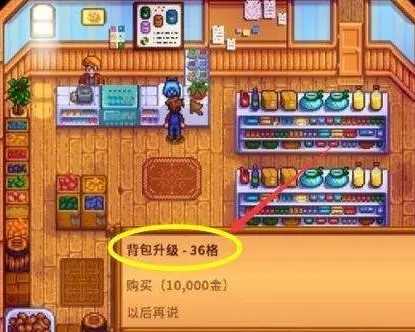 在Stardew Valley的故事中,有三种类型的背包。最初的是一个12网格的背包,然后是一个24网格的背包。如果您花费2,000克,则可以用12个额外的格子解锁第二行背包。当您在皮埃尔(Pierre)的杂货店购买时,请单击杂货店右侧的柜台。那是背包的位置,而不是左侧。如果是种子或其他东西。