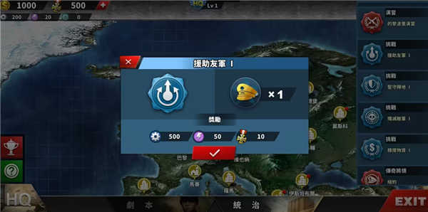 接下来是挑战,总共有4个挑战,即协助友好部队