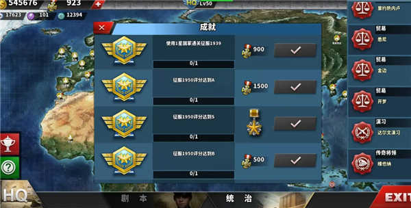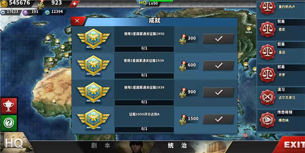 在成就中,您可以首次使用三星级,两星级和一星级国家获得300、600和900枚奖牌,以通过1939年,1943年,1950年,1950年和1980年征服的第一个奖牌。您可以获得300、600和900枚奖牌。您可以首先完成以前的相应征服成就,以获得下一次征服的相应成就奖励。除1950年的冷战外,不难征服其他征服。