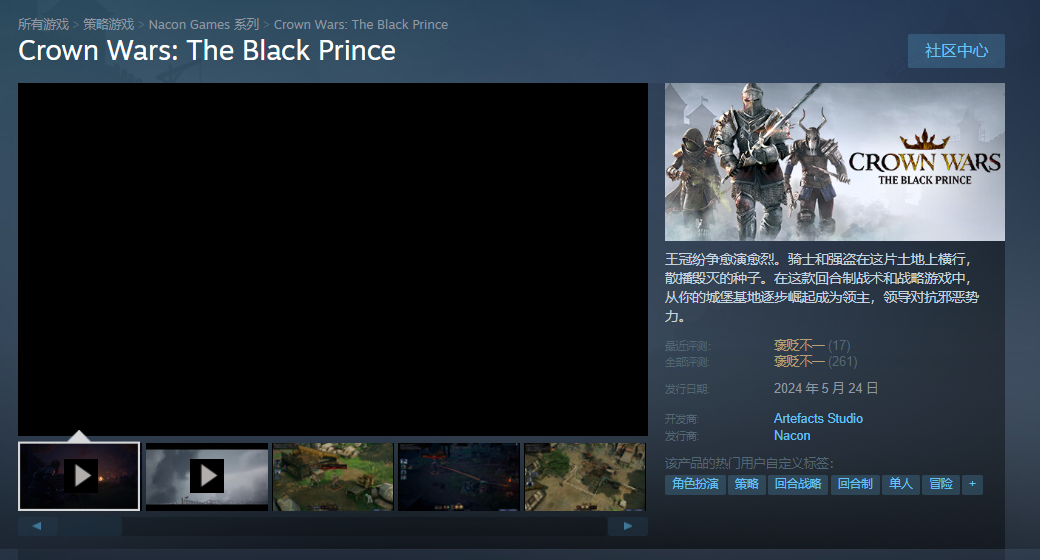 王冠之战黑王子Steam叫什么?黑王子蒸汽被称为皇冠战争:黑王子