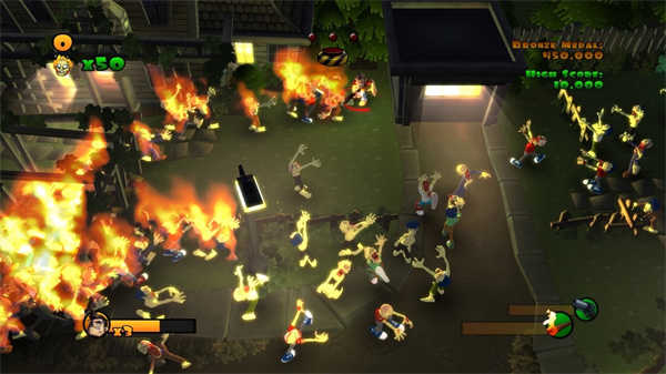 此级别地图较小,除了中心的几堵墙外,有一个平坦的区域,没有隐藏的地方。有许多自我毁灭的僵尸,当它们被刷掉时,它们位于圆形僵尸组的中心。由于火焰的传播,它们很容易引爆,而且没有分数。最好的情况是在火焰引爆之前积极用远程大火引爆。爆炸的基本得分为100,因此,如果您可以掌握在广阔的火海中僵尸僵尸层次的技术,那将是通过该水平的元素。自毁的僵尸非常慢。吸引其他僵尸在中央区域观看,以使自毁的僵尸从小组中脱颖而出,然后点燃火炬逃跑。最好与自毁僵尸保持一定距离。如果有一定数量的消防僵尸,那就四处走动,在自毁的僵尸后面并点燃它。