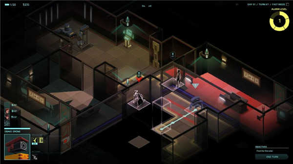 隐形公司是一个非常有趣的策略回合游戏。游戏中玩家需要指挥特工进行潜行活动,利用他们的潜行技能深入公司内部,避开监控设施和保安人员,完成各种任务并安全撤离。游戏采用了基于回合的战斗方法,玩家需要在每个回合中计划代理商的行动路线和策略。