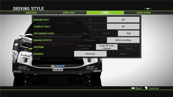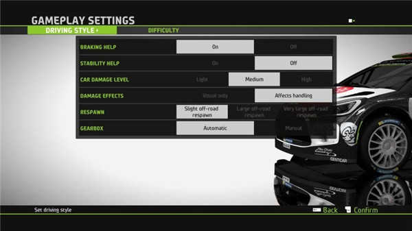 职业:关闭制动辅助,关闭稳定辅助,打开高度车辆损失,打开车辆损耗会影响控制,打开大偏差并立即返回轨道并打开自动波。