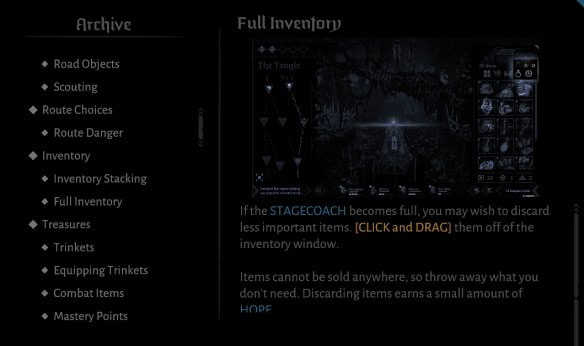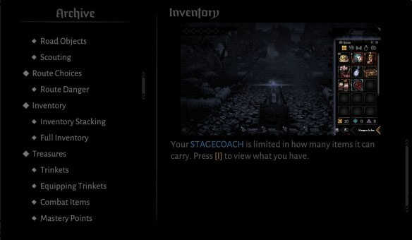 您的马车的背包数量有限。打开我,看看您的背包中有什么。您携带的网格数量由右上角的数字表示。