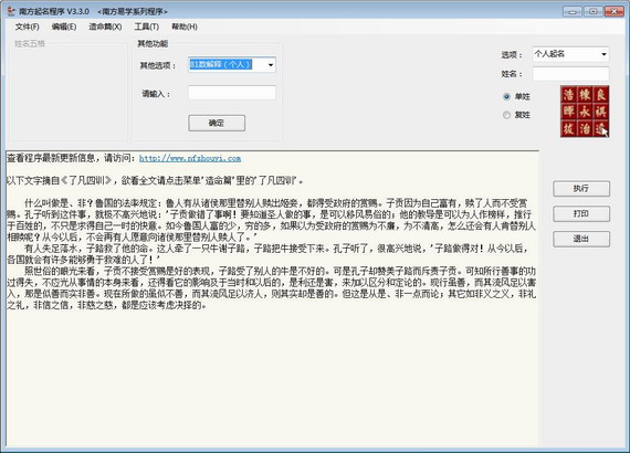 1)。显示名称的命名解释。例如:艺术:才华理性、温柔睿智、中年吉祥、晚年昌盛、出国。人名库中近3000个单词都有其名字的解释。