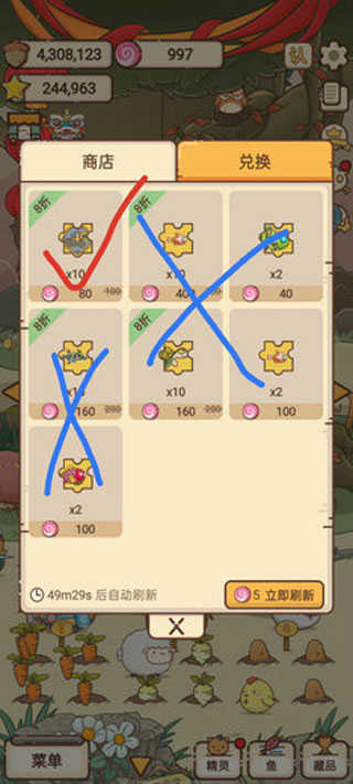 2、由于商店限定鱼无法带来更多利润,所以建议商店优先购买建筑和收藏碎片,因为会有奖励。