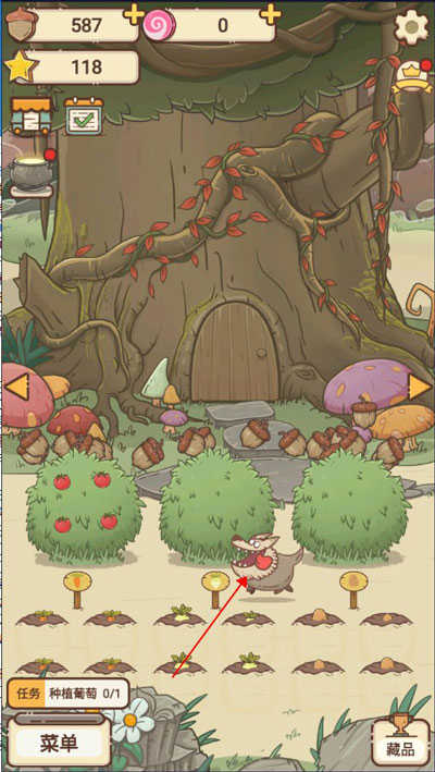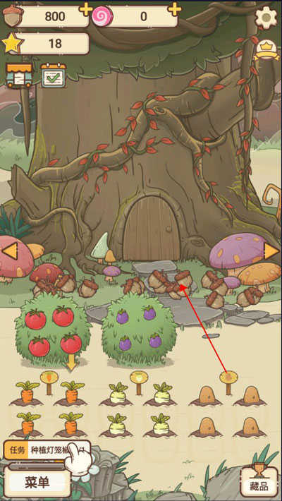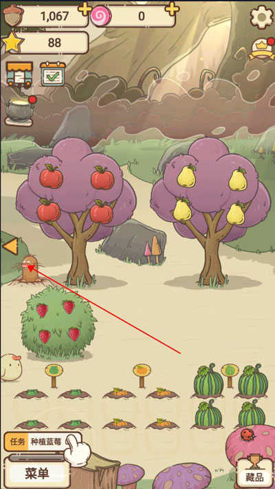 4. 盆子不会自动收获坚果树上掉落的坚果。记得收集(但是右上角的蓝色石头加速后会自动拾取)