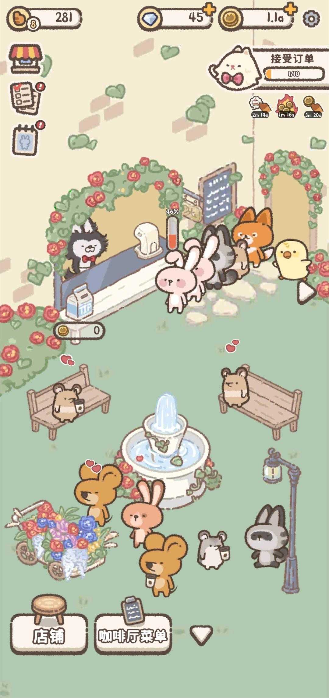 雇用各种可爱的动物工作人员来帮助您迎接和招待顾客。每个员工都有自己的特殊能力,例如加快甜点制作速度、提高客人满意度等。正确安排他们的工作可以提高您的业务效率。