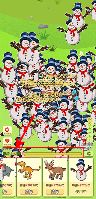 2.您可以在下方进度条中查看功德升级的进度和等级。当功德越高,可以解锁更多的动物进行放生。
