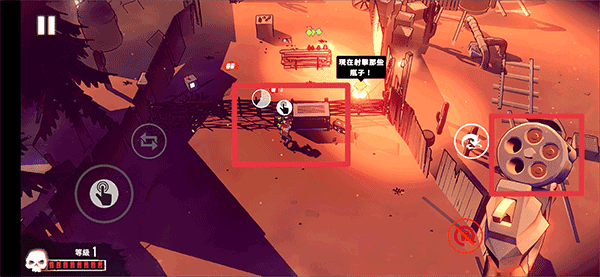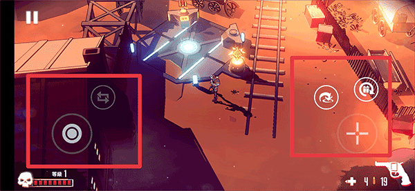 4.进入后,左边的轮盘控制角色的移动,右边的轮盘控制射击、滚动和装弹。
