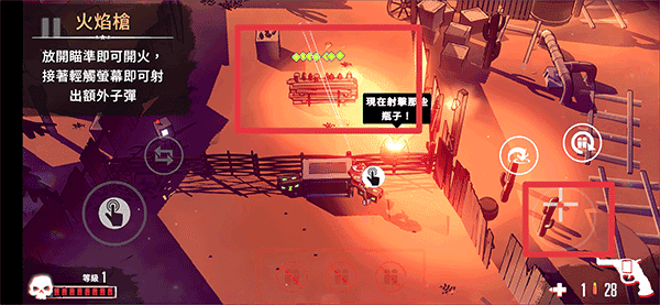 5. 了解基本按钮用法后,长按射击按钮瞄准并射击这些瓶子