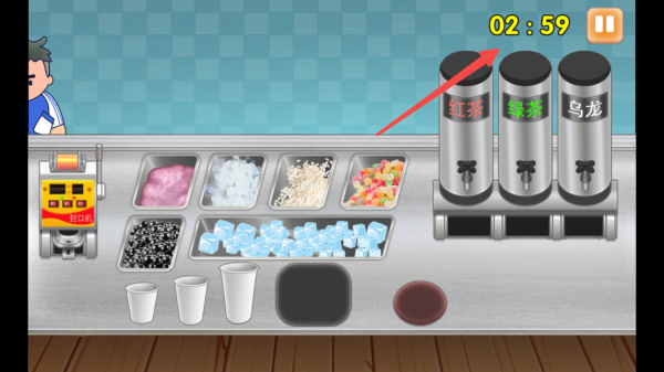 3、补充完成后,即可点击开店。关卡持续时间将显示在右上角。玩家需要在规定时间内制作满足顾客需求的奶茶来赚取金币;
