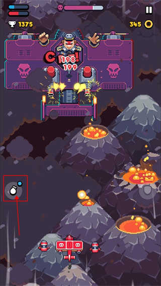 2.当左侧的炸弹图标满时,可以点击它进行火焰轰炸。