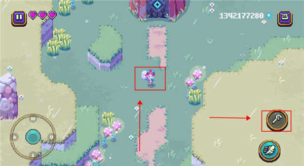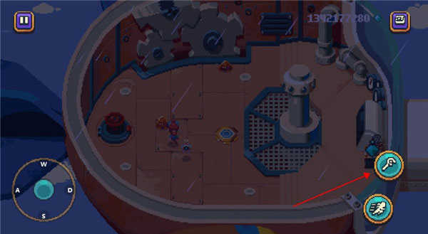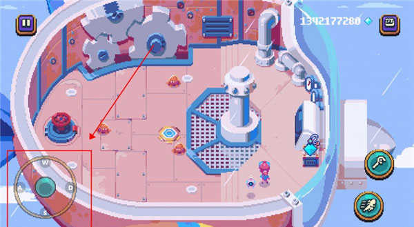 3.进入游戏后,左侧的轮盘控制角色前进、后退、向左、向右移动。