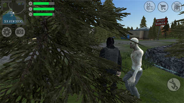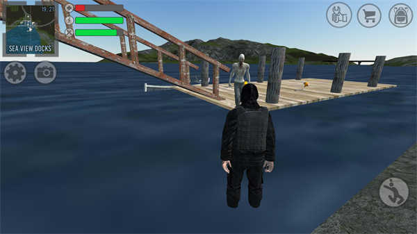 5.我们还会在游戏中拾取一些物资,所以前期要小心僵尸!看来僵尸是不能下水的;