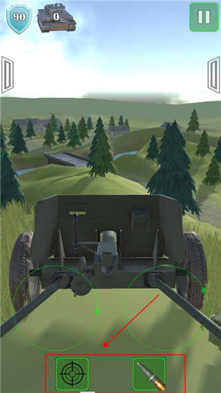 2.点击下方瞄准器进入瞄准状态并发射炮弹。