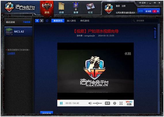 2.输入浩方电竞平台后,有很多不同的游戏。只要你想用哪个游戏就可以连接网络并进入相应的房间。界面左侧是游戏列表。