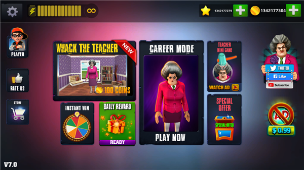 恐怖老师3D版(Scary Teacher 3D)是一款结合冒险解谜和恶作剧元素的游戏。游戏提供了多种游戏模式供玩家体验,包括戏弄模式和职业模式。每种模式都能给玩家带来不同的游戏体验。有兴趣的朋友,快来点击下载按钮来尝试一下吧。