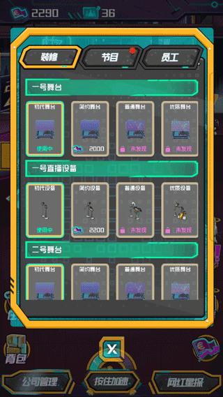 此外,游戏中有主线剧情可以为你提供丰厚的奖励,也有成就和特殊奖励。公司的管理升级也是本场比赛的一大亮点。通过升级,您可以吸引更高流量的主播前来试镜,同时为您提供更高的公司利润。