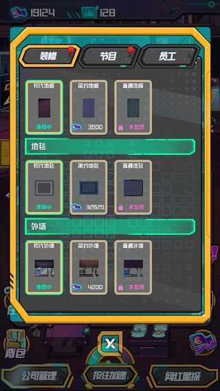 首先,在初始状态下,玩家管理的网红经纪公司还是空的。现在按照提示点击“公司管理”,您可以在那里购买一些必要的设施。但从这一点来看,它和小编之前介绍的《网吧模拟器》非常相似。除了游戏主题和背景不同之外,基本操作设置似乎并没有太大变化。