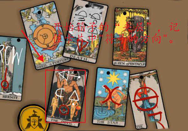 3.进入地下室,我们可以看到三幅壁画。将怀表按照图案放置在三幅壁画的中央,然后开机。您可以看到时间并根据时间调整时钟。