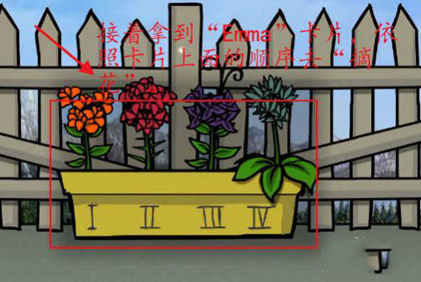 5、第五步,拿到“艾玛”卡片,按照卡片上的顺序“摘花”。