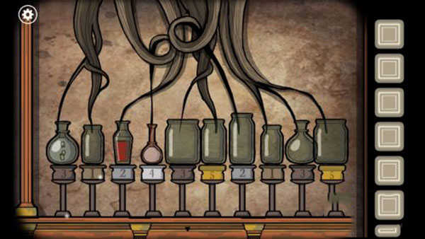 4.当我们回到地下室时,铁门会打开,我们可以看到之前剧情中的所有机关。我们调整器官,使所有器官处于平行位置。