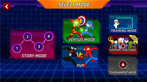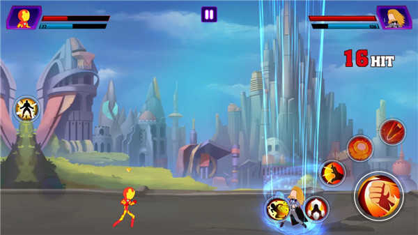 该作品是一部关于火柴人的作品。你必须操作自己的超级英雄来对抗恶棍。是一款经典的动作竞技类手机游戏。而在这里,你将有其他类型的英雄一起战斗,购买强大的武器和地热战斗。