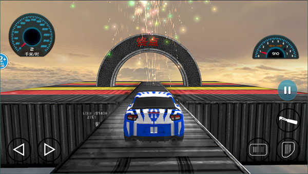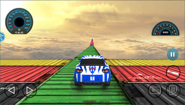 2.游戏的玩法也非常简单。我们需要控制小车在空中设置的轨道上前进,到达终点。左侧的按钮控制汽车的左右转向。右侧按钮分别用于控制小车的前进、后退和刹车;