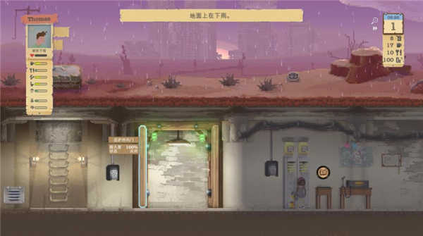 在《庇护所》中,人物有五大需求:喝水、吃饭、睡觉、排泄、洗澡。如果其中任何一个数值达到峰值,角色就会陷入相应的不良状态,比如脱水、营养不良等,从而导致生命值逐渐下降。