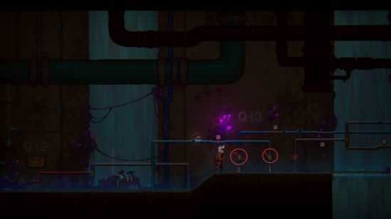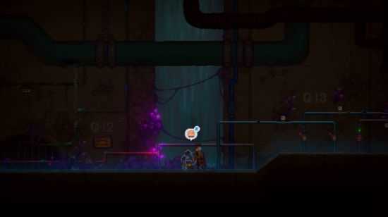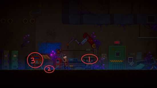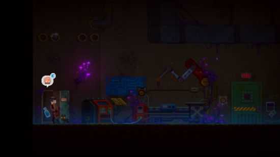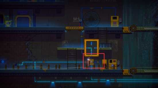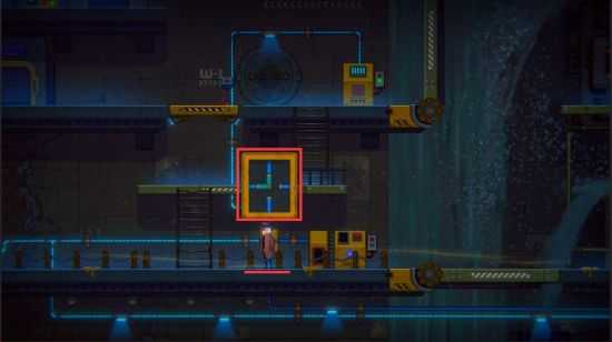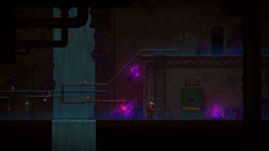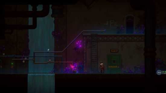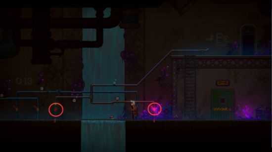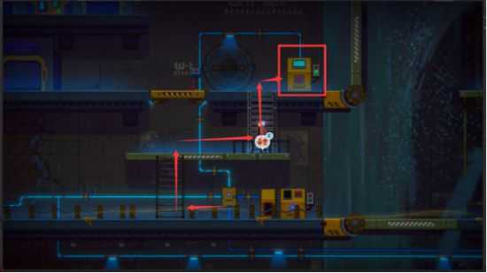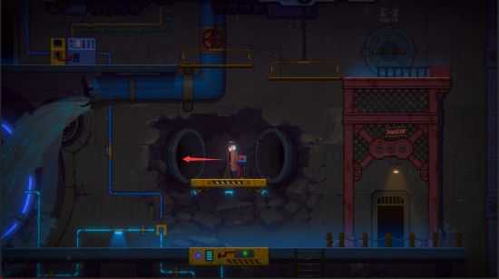 门关上之前,鸟脸男就闪了过来。继续向右跑并拉动红色蒸汽扳手。